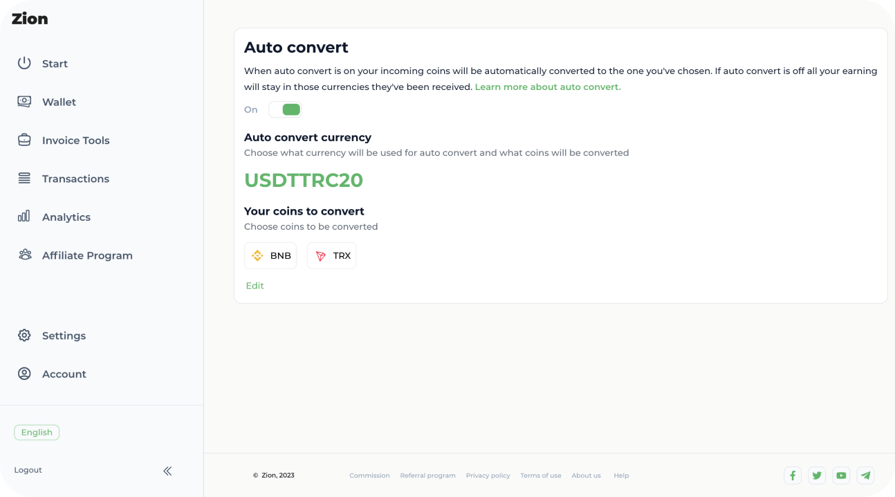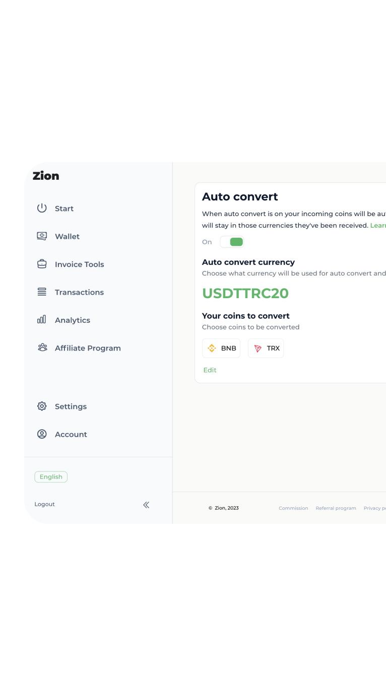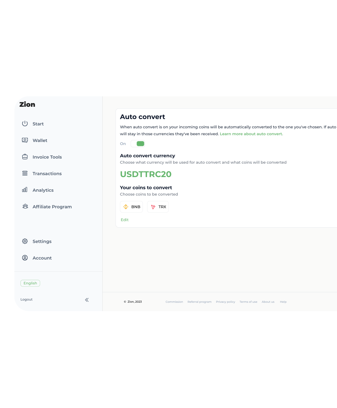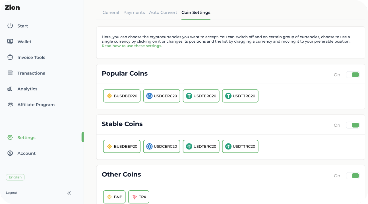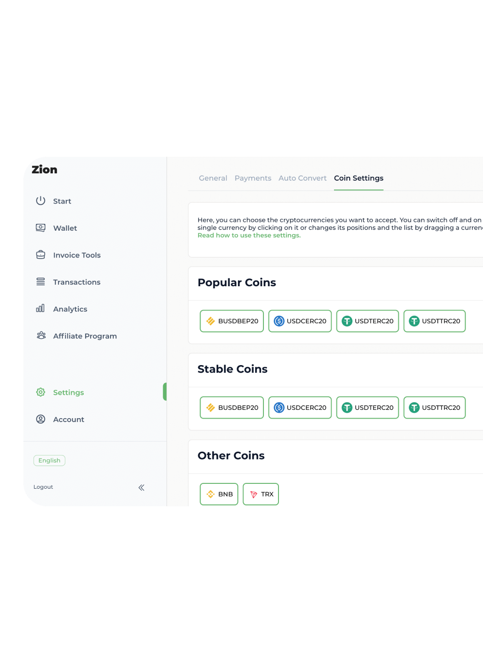 Convert incoming cryptocurrencies into stablecoins or your preferred coins automatically or manually